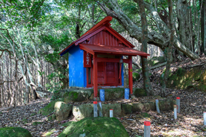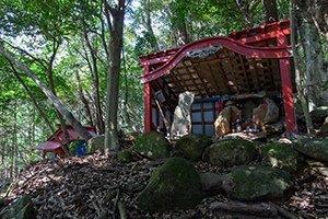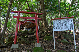 御祭神は、木花咲耶姫。山上の石室には修験者の石像を安置。集落に悪魔や悪病が入るのを防いでくれると伝わる。
