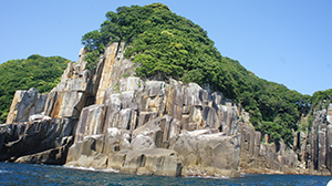 荒波が打ち寄せ鋭く切り立った高さ70~100mの柱状節理の岩壁がそそり立つ景勝地