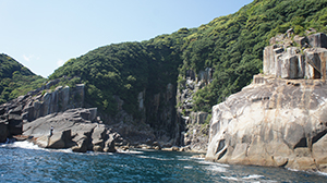 荒波が打ち寄せ鋭く切り立った高さ70~100mの柱状節理の岩壁がそそり立つ景勝地